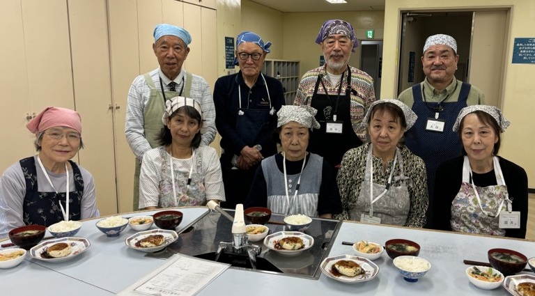 料理時も素早く担当分担。長年の経験を活かした方がメインを調理!料理に不慣れな方もこれまでの経験を活かし、協力しながら副菜を調理していました。