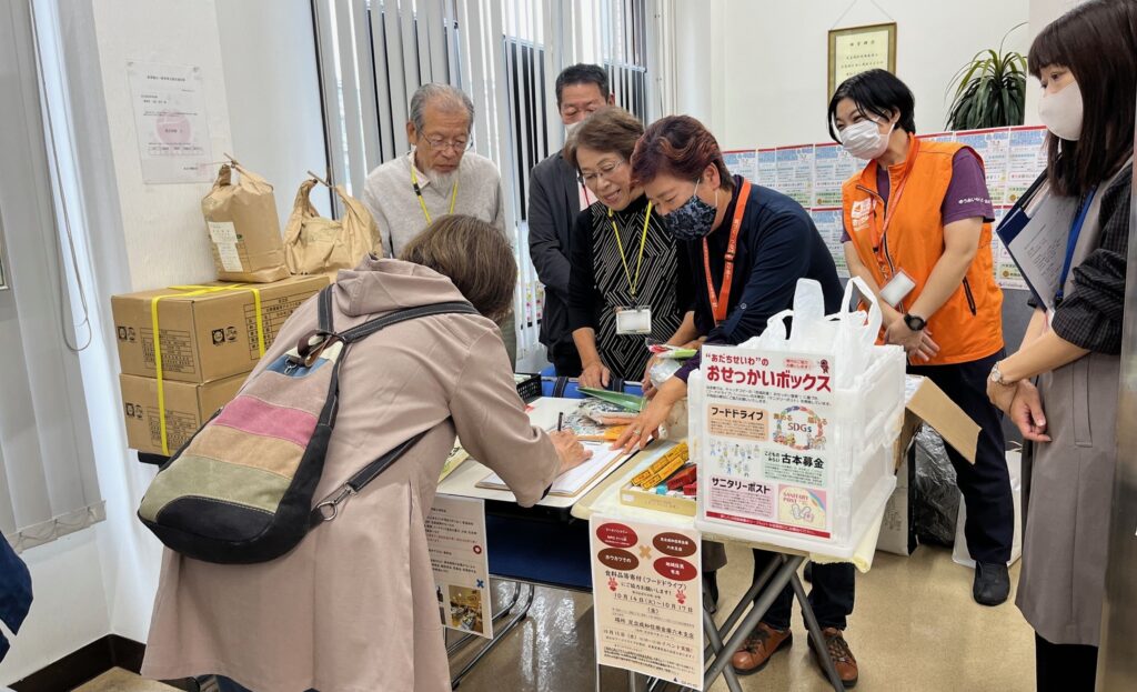 地域の中に生活困窮者がいることを知った住民から相談を受けた地域包括支援センターさのと、フードパントリーの食料品の減少が課題となっていたNPOさくら彩。課題解決のためにできることを検討し、10月15日(水)に足立成和信用金庫六木支店でフードドライブイベントを開催しました。